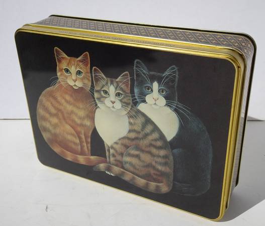 Vintage Kitty Cat Storage Tin Note Box 1995 Steven Lawrence Vintage Stationary Container