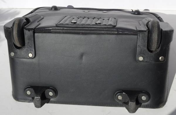 There are scuffs on the plastic protective parts. The edge of the plastic wheel base framework has very worn edges - not the bag itseft, just the rolling base.