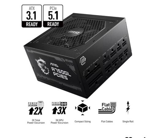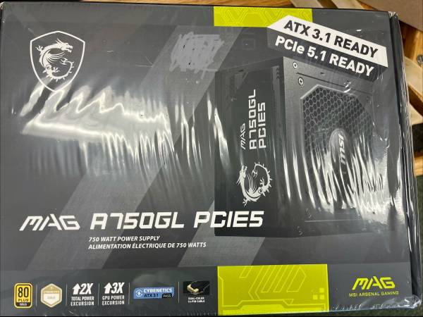 MSI MAG A750GL PCIE5, Fully Modular Compact Gaming 750W Power Supply, 80+ Gold, ATX 3.1 & PCIe 5.1 Ready, Native Dual-Color 12V-2x6 Cable