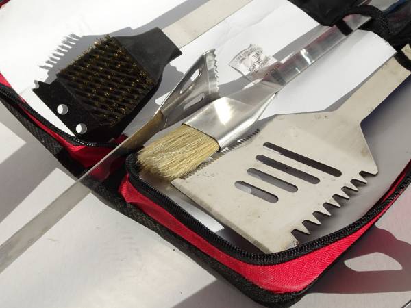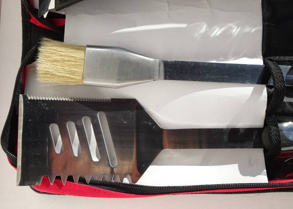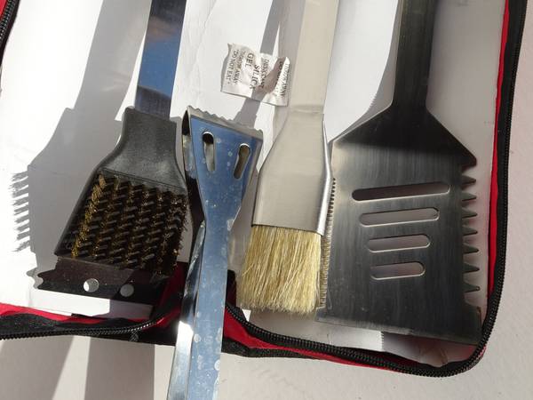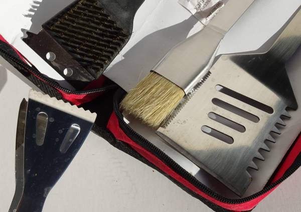 Includes: Tongs, Spatula Flipper, Basting Brush, Grill Grate Cleaner Scraper