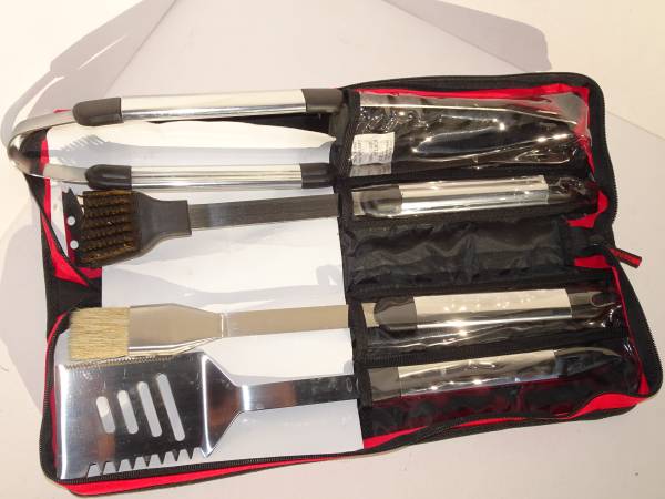 New 4 Piece Grill Tool Set in Zipper Carry Case, Grilling BBQ Tools
