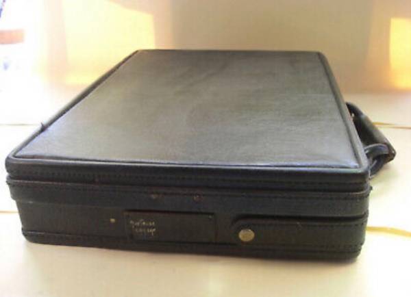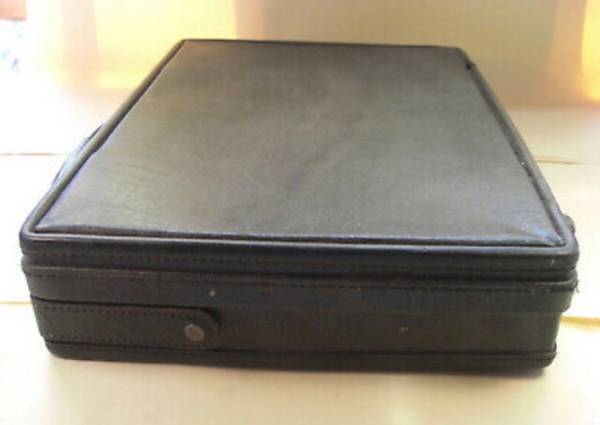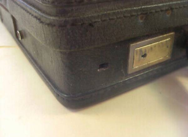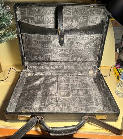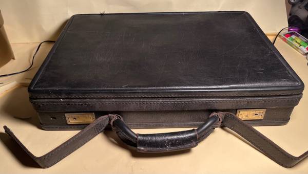 Hartman black leather briefcase. Nice condition. Locks work, includes original key. Used. Has some blemishes from use. Lining is a bit loose on the inside. Has a small hole. Shown in photos.