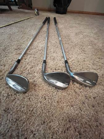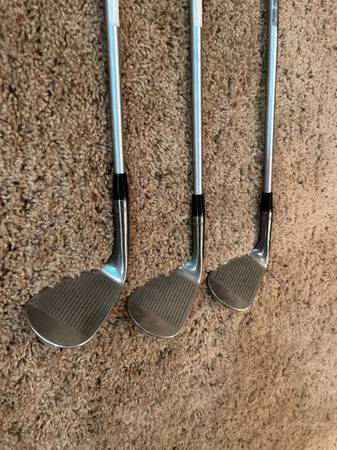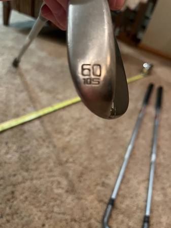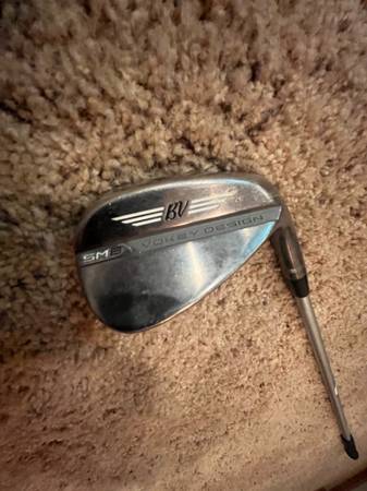 Vokey Design and the grips say Golf Pride and Tour Velvet.
