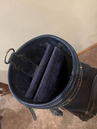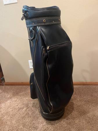 I also have the leather navy Palmer Golf bag for sale for $25. It stands on its own, and has the usual many-many pockets to store shoes, balls, tees, etc.