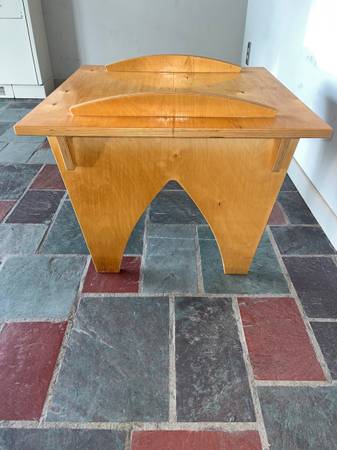 Vintage “Puzzle chair” plywood footstool or end table. Footstool only - no cushion. In good shape. Could be used as an end table. 23” square. 16.5” tall. Labels on the bottom - not sure what they...