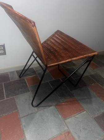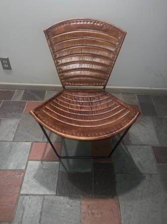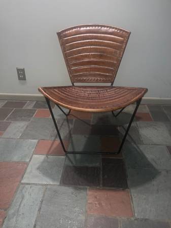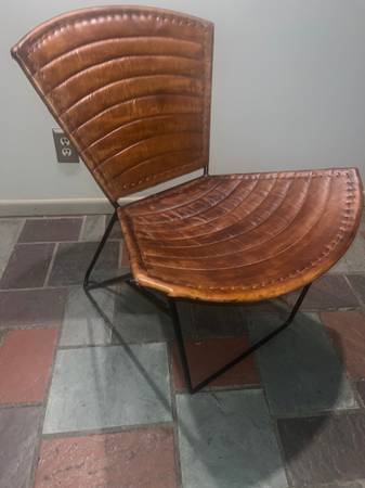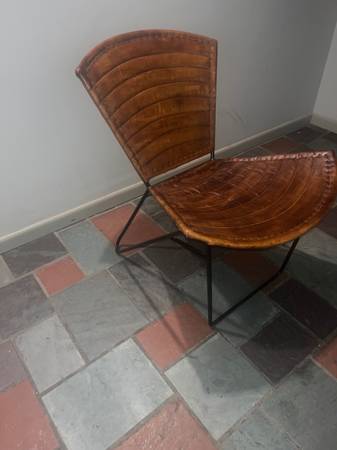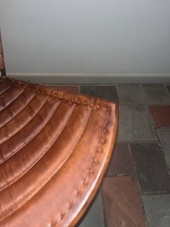 Vintage leather and metal Butterfly chair - Felix chair by Butler Specialty. In good shape - leather is in good shape with well worn look. Metal is solid. 23” wide, 16” center of front of chair seat...