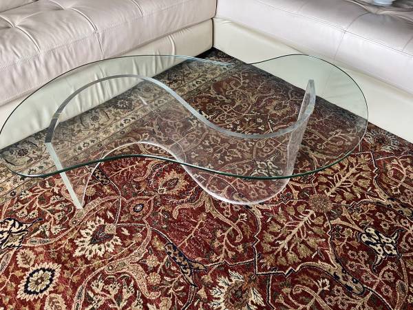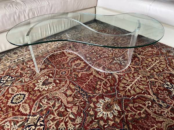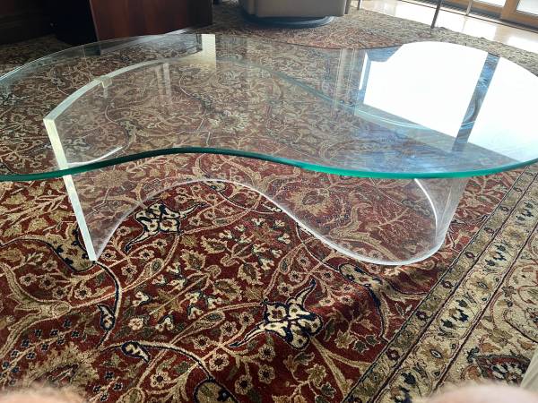 Vintage Vladimir Kagan style Lucite S-curve and glass top coffee table. 50” by 24” and 15” tall. In good shape fleck out prices of other online. This is very reasonably priced in comparison $299 -...