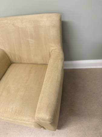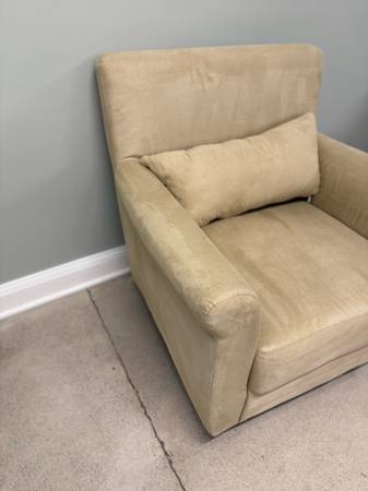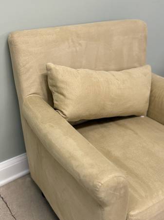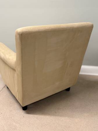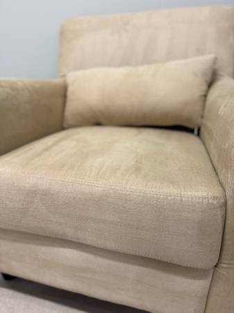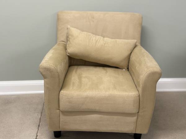 Nice, clean ivory/beige accent chair:) comes with matching throw pillow. Simple. ••30.5x26x32•• -versatile -50$ Delivery available upon request