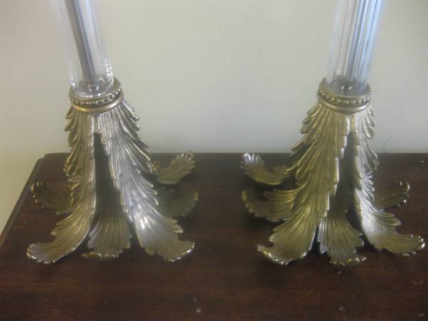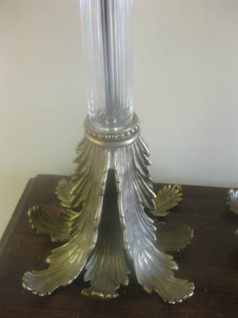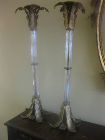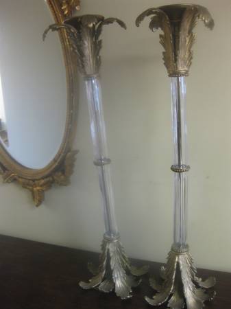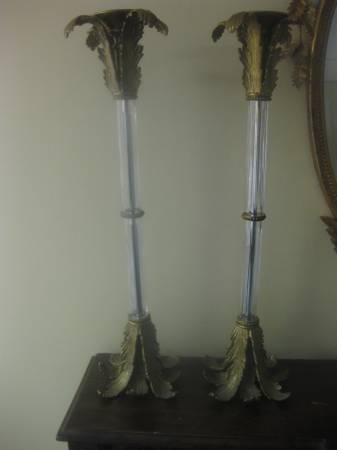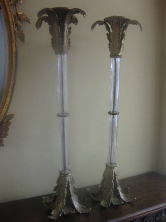 Pair of John Richards Brass & Crystal Tall Candle Holders