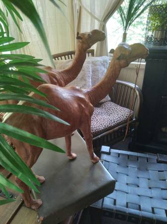 Both camels for $80 Leather material 19 inches tall 21 inches head to tail 7 inches at widest part Text or Call Pickup Will remove when sold