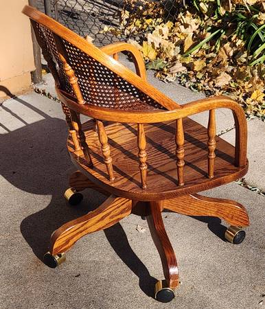 Excellent condition, great look! Seat is 22" wide x 18" deep. Seat is adjustable and is currently set at 17" from the floor.