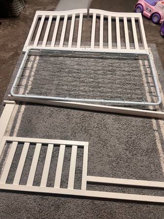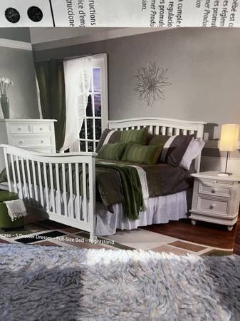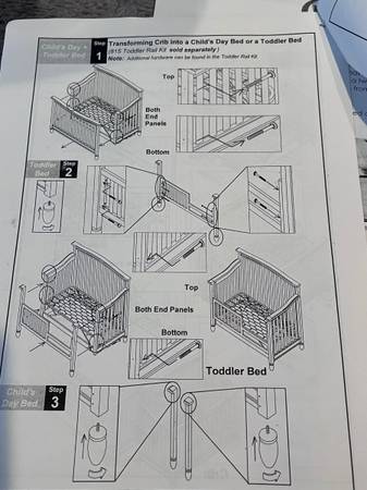 Beautiful bed! Starts off as a crib. Then becomes a toddler bed where the child can get in and out by himself because it’s close to the floor. Then……. the back and front of the crib become the head and end of the FULL size bed. It has a mattress but you will need a mattress for the crib.