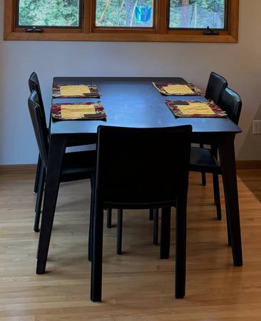 Beautiful, dark table, solid wood. Very high-quality. From room and board. Doesn’t fit the new house. 42” wide 70” long