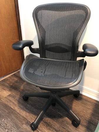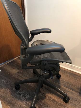 Size B – fits most people (5’2”–6’2”, 130–325 lbs). Black/graphite frame. Smoke and pet-free home office chair.