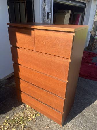 6 drawer chest of drawers in rare discontinued cherrywood finish. wood veneer matches other IKea (Expedit, Lack, etc) Great as bedroom setup. Fully assembled. Removable drawers. Sold at ikea for $327+ after taxes and requiring assembly. Buy this unit in nice shape already put together for less than half of that cost