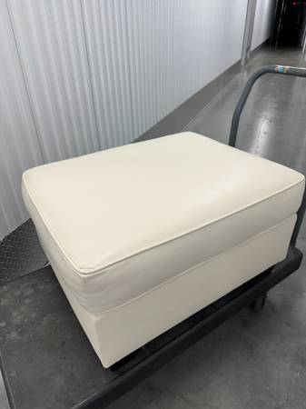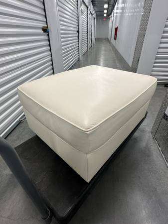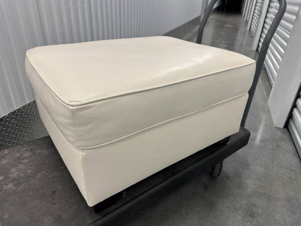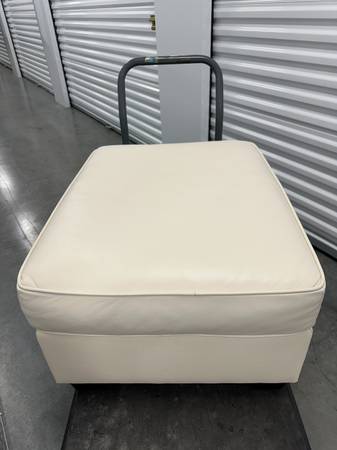 WEST ELM "HENRY" IVORY LEATHER OTTOMAN