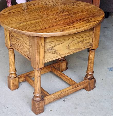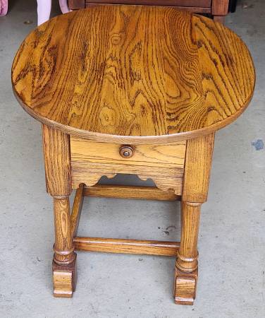 Oak Accent Table with Storage Drawer. 25.5" x 21.5" wide X 21.5" tall. Great condition.
