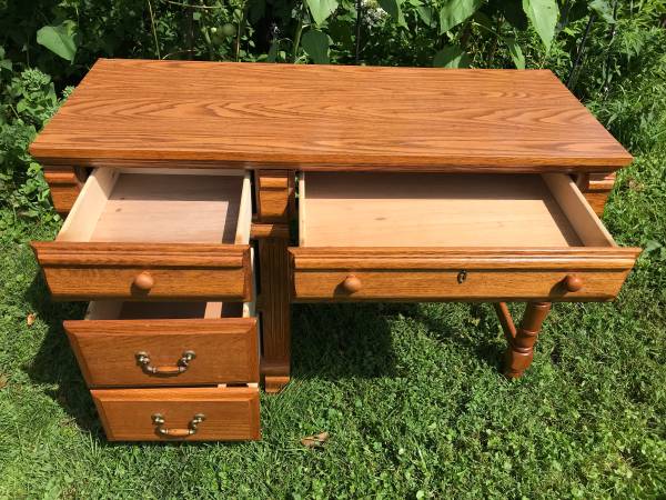 Beautiful Oak Wood Coffee table with 4 drawers in excellent condition very thick and sturdy will look nice in a 1 & 2 bedroom apartment or house. 44 Inch wide, 30 Inch high, 18 Inch long