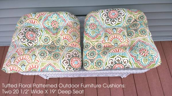 Outdoor Cushions & Pillows Set Of Seven Tufted Floral Patterned Outdoor Furniture Cushions New, Never Used One 43 1/2" Wide X 20" Deep Seat Cushion Two 20 1/2" Wide X 19" Deep Seat Cushion Four...