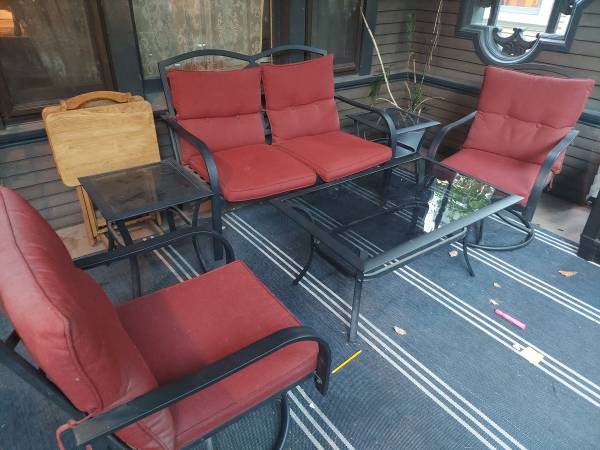 Like new porch / patio furniture - the Palm Springs collection from Menard's (link below). Paid $700 for the set brand new 3 years ago. We're changing to porch couches so selling this set. I am not including the tables for the above price BUT if you want them, let's discuss. Overall great condition, comfortable, durable, etc.