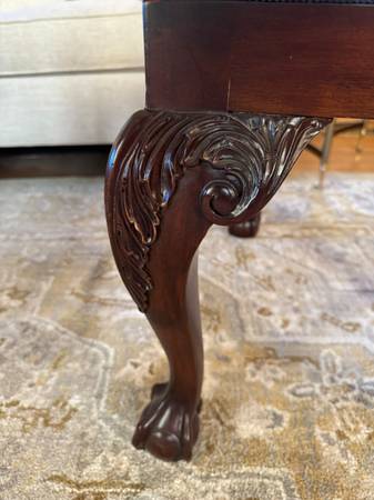 Beautiful set of 6 Ethan Allen Chauncey dining chairs. They are hand carved mahogany with a navy blue linene-weave fabric. These chairs are in excellent condition, and are still sold by EA for $880 each. Perfect for your upcoming holiday dinners! Each measures 24" x 24" x 40". Price is firm. Cash only.