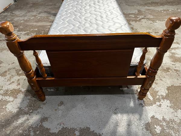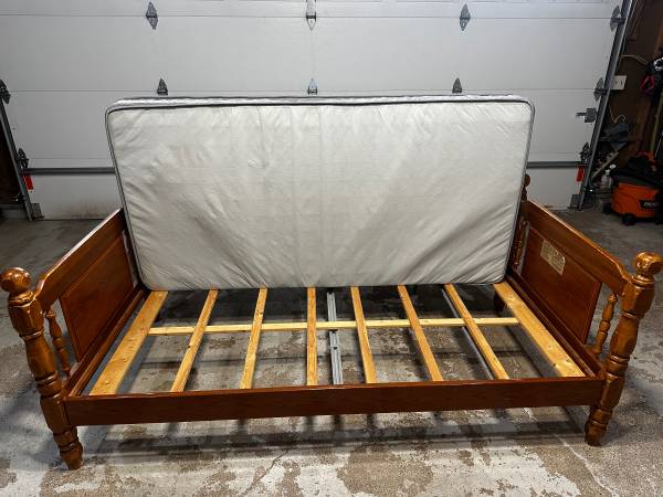 Frame comes apart and sets back up easily. Mattress clean, no rips or tears. $40 obo. FCFS Pick up near Maplewood Mall. Thanks for looking. -John