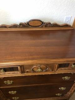 Dresser is 44in high, 48in with back design. 36in wide and 19in deep. On wheels.