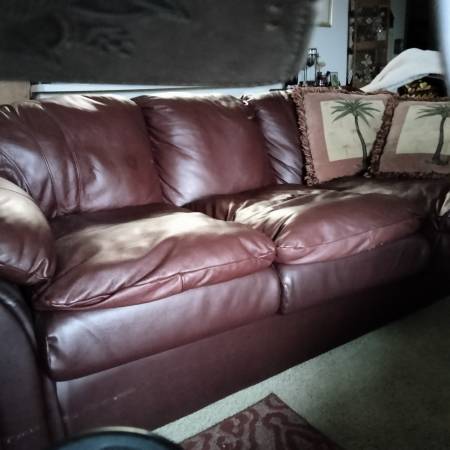 Burgundy Leather Couch with pull-out sleeper Hardly used Some small scratches on back of couch, which would go against a wall