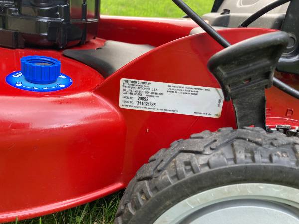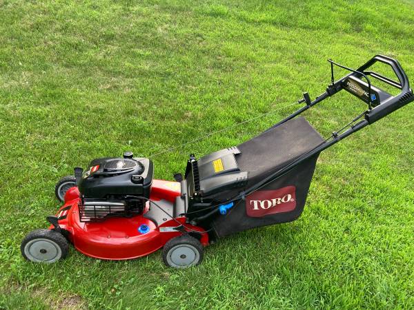 22" Toro SR4 Super Recycler mower. Self propelled, rear wheel drive... Toro's Personal Pace system. Powered by Briggs Quantum motor. Never Rust Aluminum deck, with deck wash hook-up. Exceptionally clean, shiny paint sharp decals. Completely serviced, including: Fresh oil change, new air filter, cleaned deck/motor, sharpened & balanced blade, carb cleaned/rebuilt, non-oxy fuel. Great condition, very clean machine. Comes with bagger bag, and mulch plug. Ready to mow!