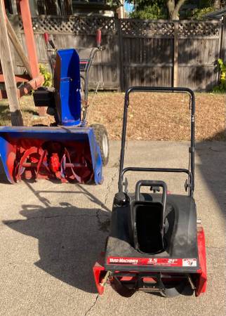 21 INCH MTD YARD MACHINE SNOWBLOWER SNOW THROWER 3.5 HP TECUMSEH ENGINE TURNS OVER NEEDS A TUNEUP we have 3 different brands for sale