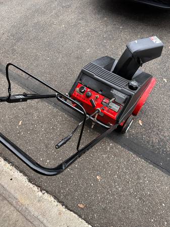 MTD Snowblower with electric start. Electric and pull start work great, starts right up on the first pull. All tuned up and ready to go for the season! Nothing wrong with it, works as it should....