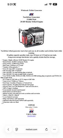 -13kw surge, 10kw continuous. Could power you’re entire home or food truck