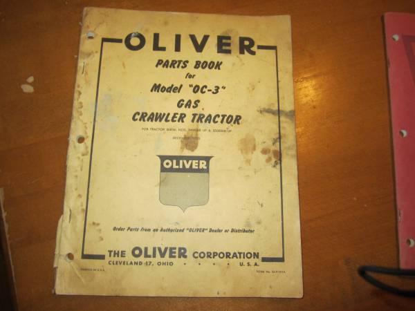 OLIVER PARTS BOOKS model 0c-3 crawler tractor and instruction manual CALLS ONLY 612 489 96fivetwo