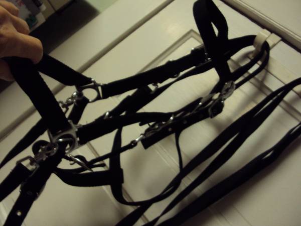Nice 5 1/4" curb bit, nylon bridle and nice halter with extras including reins and side checks. All close to new, not used. I can break up the items if you only want one, etc.