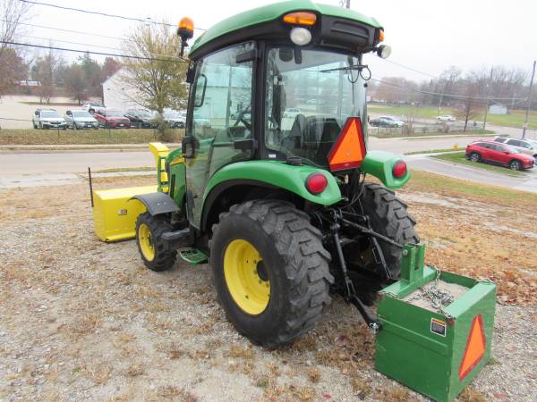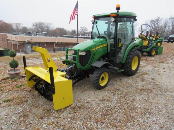 John Deere 3520, 37HP Liquid cooled turbo charged Yanmar Diesel 2009 with 1,021 hours. Factory cab with heat& air, radio, front and rear lights and wipers. Tractor has the three speed hydro trans, diff lock, tilt wheel, PS, mid and rear and front PTO, front and rear 3 point, front fenders, joy stick hydraulics and rear hydraulics. Comes with 59" front snow blower that is like new, John Deere sells front brooms or blades to go on the same front three point, rear weight box with weight and owners manuals. I also have a complete 60" JD belly mower for sale, complete with all mounts and optional Hydraulic lift. Total with tractor mower and blower $31,900 Deliver may be available, call 515-669-2621 I have a video on my phone if you need it.