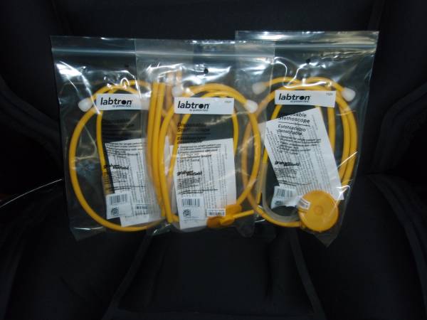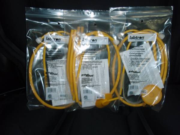 A lightweight, durable, latex-free plastic stethoscope with 22" PVC tubing and single head chestpiece. The safety and convenience of a single patient use/disposable stethoscope combined with superior acoustic sensitivity. Must buy all 3 for $12.