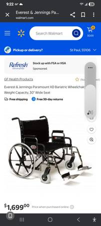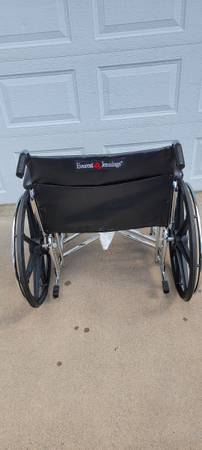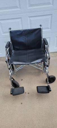 Everest & jennings paramount 30 " wheel chair,400 lb rated,good condition,a few cuts on back pouch can be seen in picture,removable foot rests,fold up for trans port ,picture of similar one from walmart.
