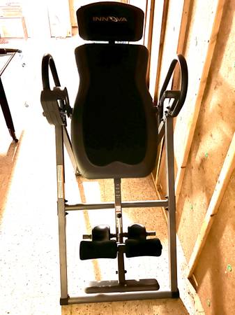 The Heavy Duty Innova Inversion Table has 300 lb weight capacity Reversible ankle holders Adjustable height and headrest Barely Used and Great price!