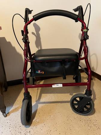Nova zoom 20 Walker. Height adjustable. Generous storage pocket. Very smooth operation. Nearly perfect condition - 1 small scratch on rubber handle from a piece of tape). Bought it for our Mom...