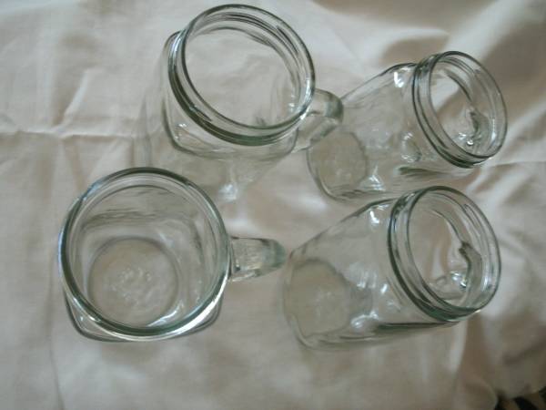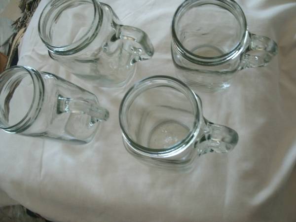 Set of 4 very nice 1 pint (approximately) glass drinking mugs - Great for the cabin or watching sports in that comfy chair - $5