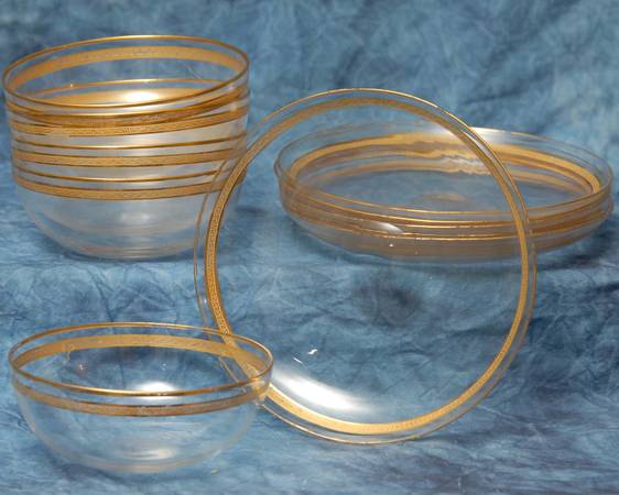 Up for your consideration is a set of Greek Gold rimmed 5 glass bowls with 6 matching saucers in very good condition. The bowls measure 4.5 x 2 inches with 6.5 inch matching saucers. Some of the gold has rubbed off. These need to be hand washed. This comes from a smoke free home. Click on “See More Ads by This Buyer” to view more of my items. Email me for contact information or if you have any questions, if you see this it is available. Cash only. Pick up only during daylight hours, by Lexington Parkway S and Randolph, St. Paul, 55116 South/West Summit Hill area, by the Trader Joe’s.