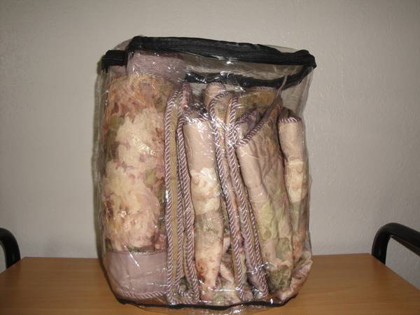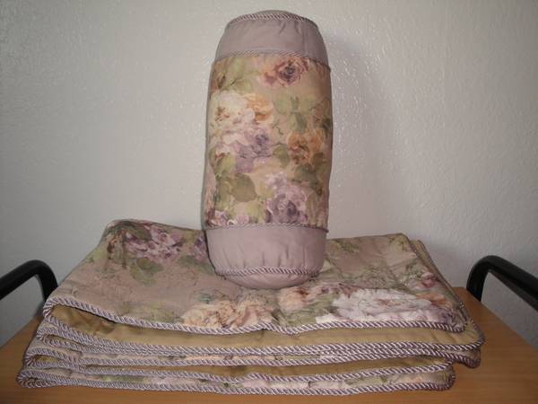 Quality heavy duty comforter. Used in guest room bed but never slept in it. Comes with matching never been used cylinder neck pillow and 2 pillow cases. MSRP $149.99/