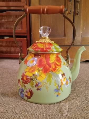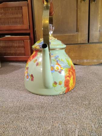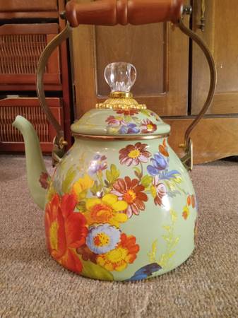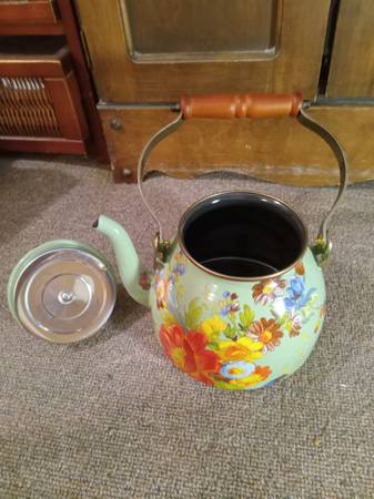 Used only for decoration and in as new condition. Vintage enameled Teapot. I think the design is Blue Flower Market. That's what I saw online anyway. Check out the pics