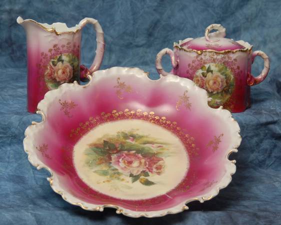 Up for your consideration is a set of RC Bavarian Monsijou: bowl, creamer and covered sugar bowl in excellent condition. The bowl measures 10x3 inches, creamer 4.5x2.5 and sugar bowl 4x3.5. This comes from a smoke free home. Click on “See More Ads by This Buyer” to view more of my items. Email me for contact information or if you have any questions, if you see this it is available. Cash only. Pick up only during daylight hours, by Lexington Parkway S and Randolph, St. Paul, 55116 South/West Summit Hill area, by the Trader Joe’s.