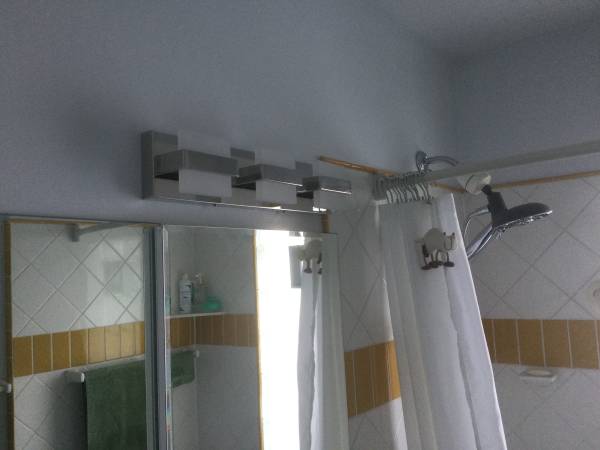 Solfart Modern Dimmable Gloss Chrome Led Vanity Light for Bathroom, Waterproof, 3 Lights. Warm Light 3000K, originally $70. We bought and installed it, but it worked erratically. We asked for a replacement and got it. It also was erratic. Our handyman determined that the part that controls the light was not UL certified, so he replaced the part with one that was UL certified. So this light is fully functional and safer than the light that you'd order from Amazon. Dimensions: 19.7"L x 3.9"D x 4.3"H
