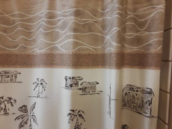 Standard size cloth shower curtain with safari animals theme. Like new condition.