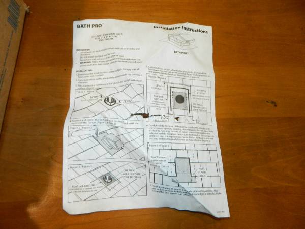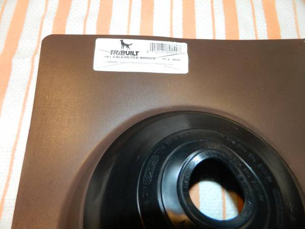 1 Tribuilt 4 N 1 Galvanized Brown IPS PC #89249 Roof Flashing for $10. 1 Tribuilt Bath Pro Roof Jack for 3" or 4" Round Duct Model BRV34 Color Black for $25. If interested, text or email.