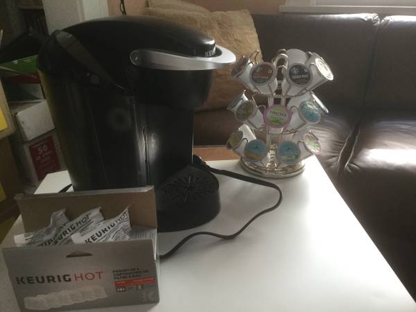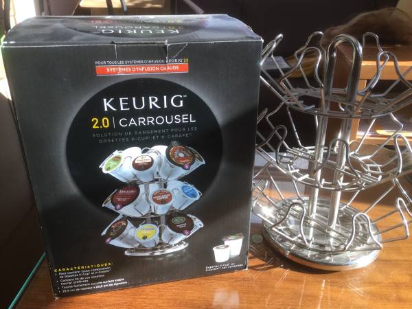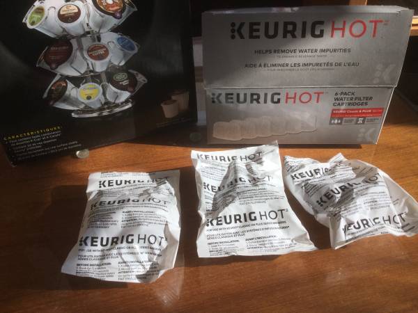 It comes with 3 unused water filters and a Keurig Carousel, which holds 20 K-Cups.