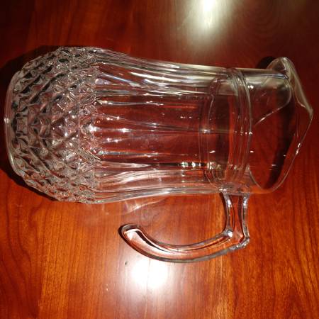 Elegant crystal glass pitcher with a textured design. 9" in height. Cash, PayPal, Venmo. Will ship for price plus shipping and handling.
