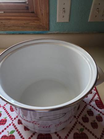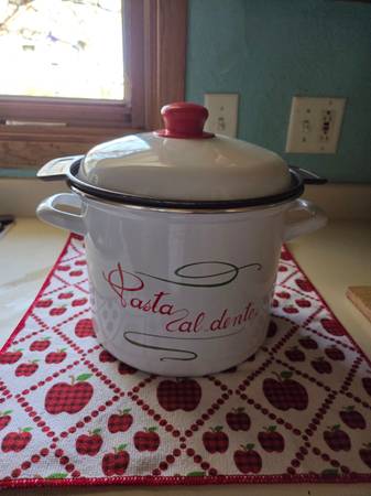 Pasta al Dente Excellent ..clean condition other than a small chip on bottom Comes with strainer